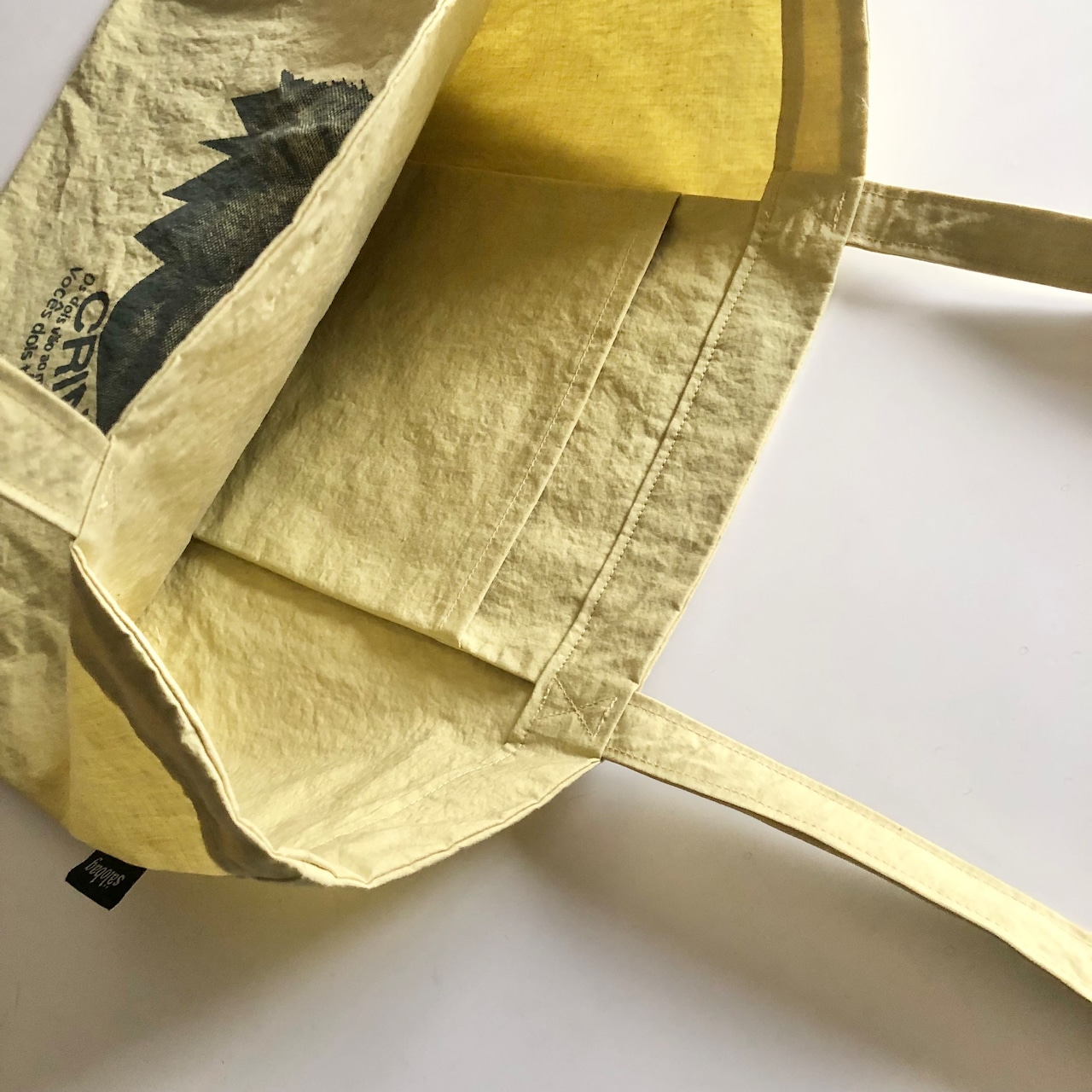 ワッシャー加工された丈夫な生地で、A3サイズが入る少し大きめのトートバッグになります。
